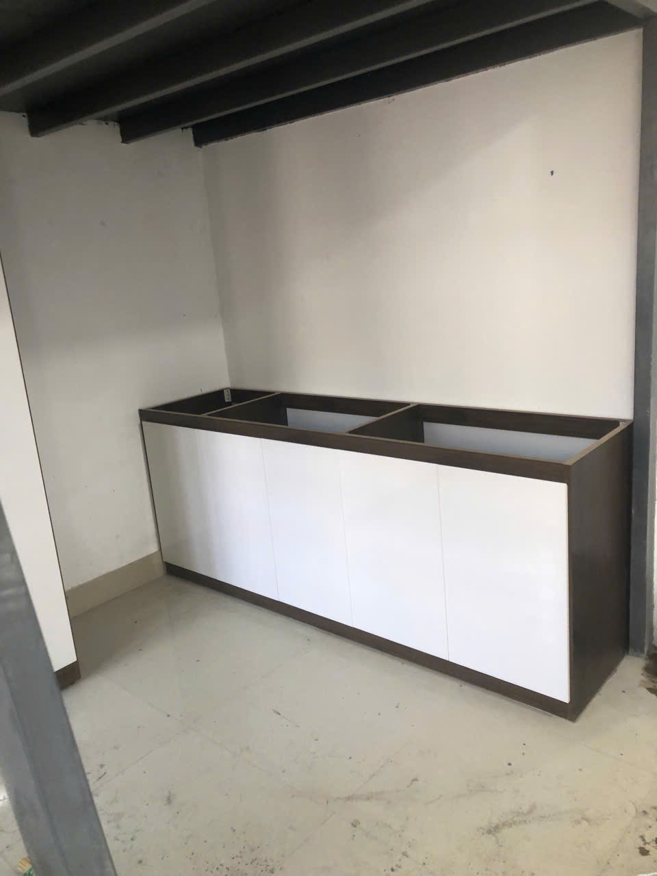 • Bộ bếp dưới bao gồm khung bếp chưa có mặt đá hoa cương và bồn vòi.