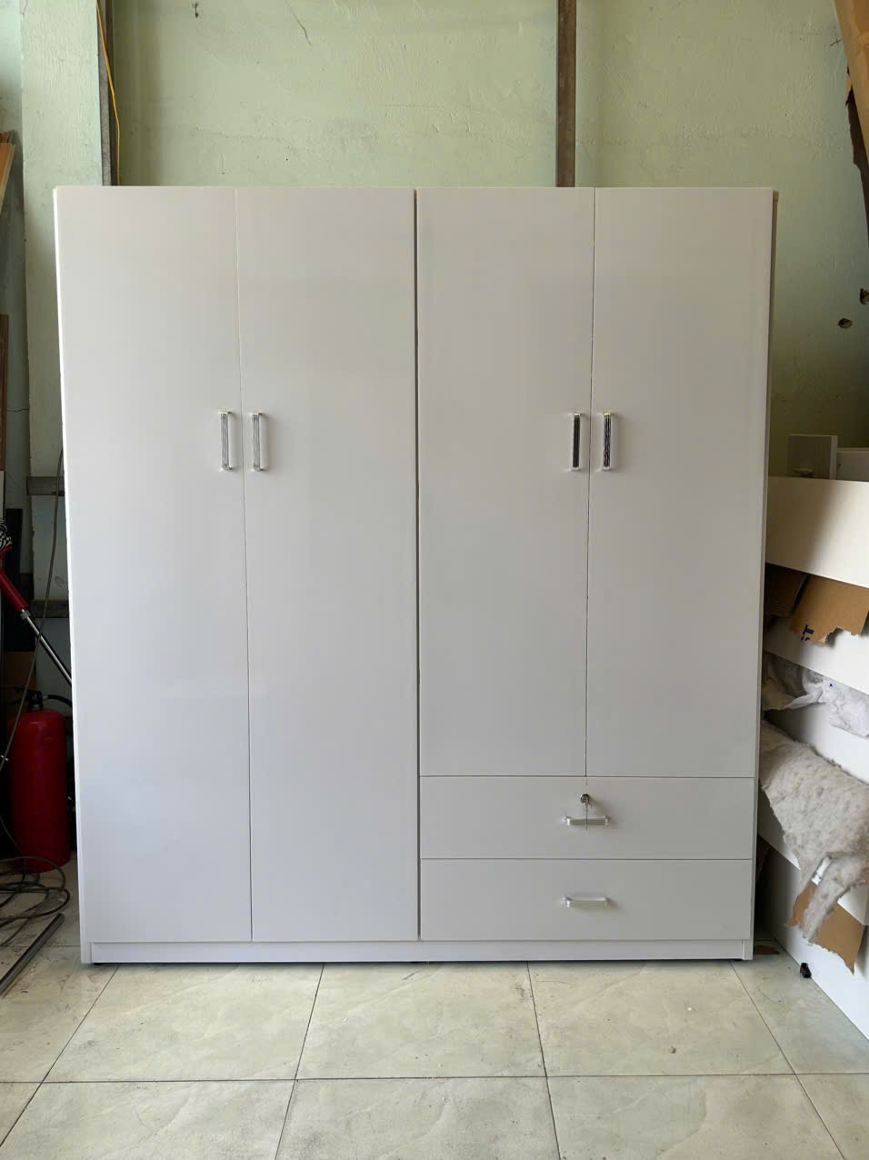 Bảo hành kỹ thuật (bản lề, ốc vít, ray ngăn kéo, bung keo) 2 năm, bảo hành khóa 6 tháng.