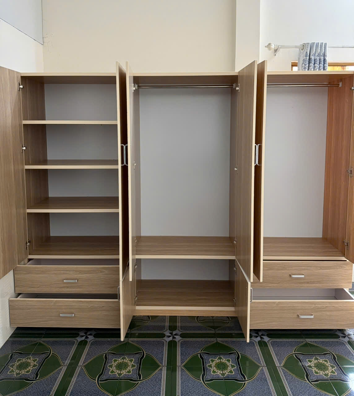 Bảo hành kỹ thuật (bản lề, ốc vít, ray ngăn kéo, bung keo) 2 năm, bảo hành khóa 6 tháng.