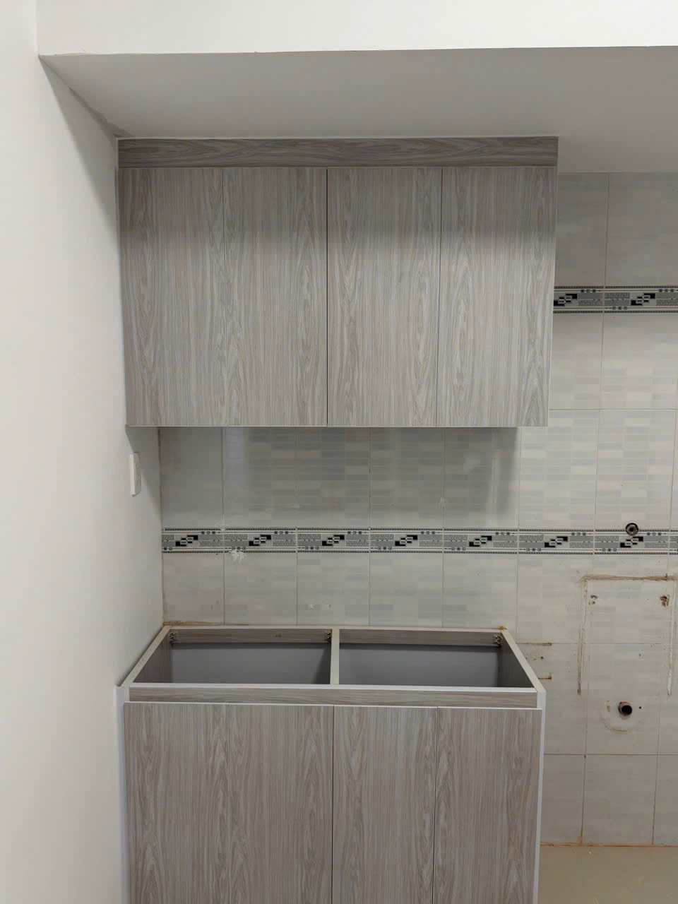Tủ bếp trên : Ngang 125cm * cao 70cm * sâu 31cm