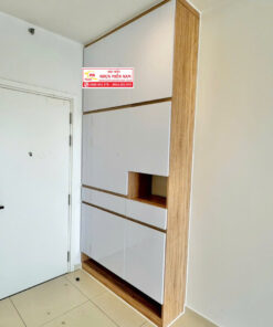 - Sản phẩm được làm kỹ càng cẩn thận, có gắn tăng cường vị trí bản lề giúp tăng độ bền cho tủ.