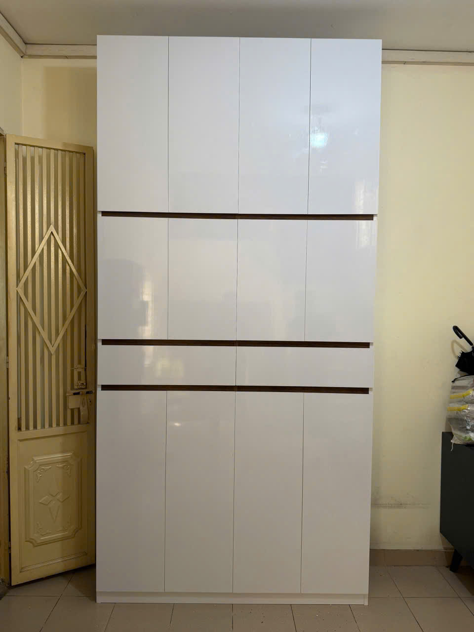 - Bảo hành kỹ thuật (bản lề, ốc vít, ray ngăn kéo, bung keo) 2 năm, bảo hành khóa 6 tháng.