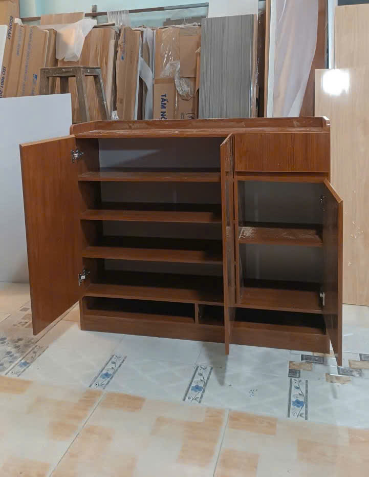 - Sản phẩm được làm kỹ càng cẩn thận, có gắn tăng cường vị trí bản lề giúp tăng độ bền cho tủ.