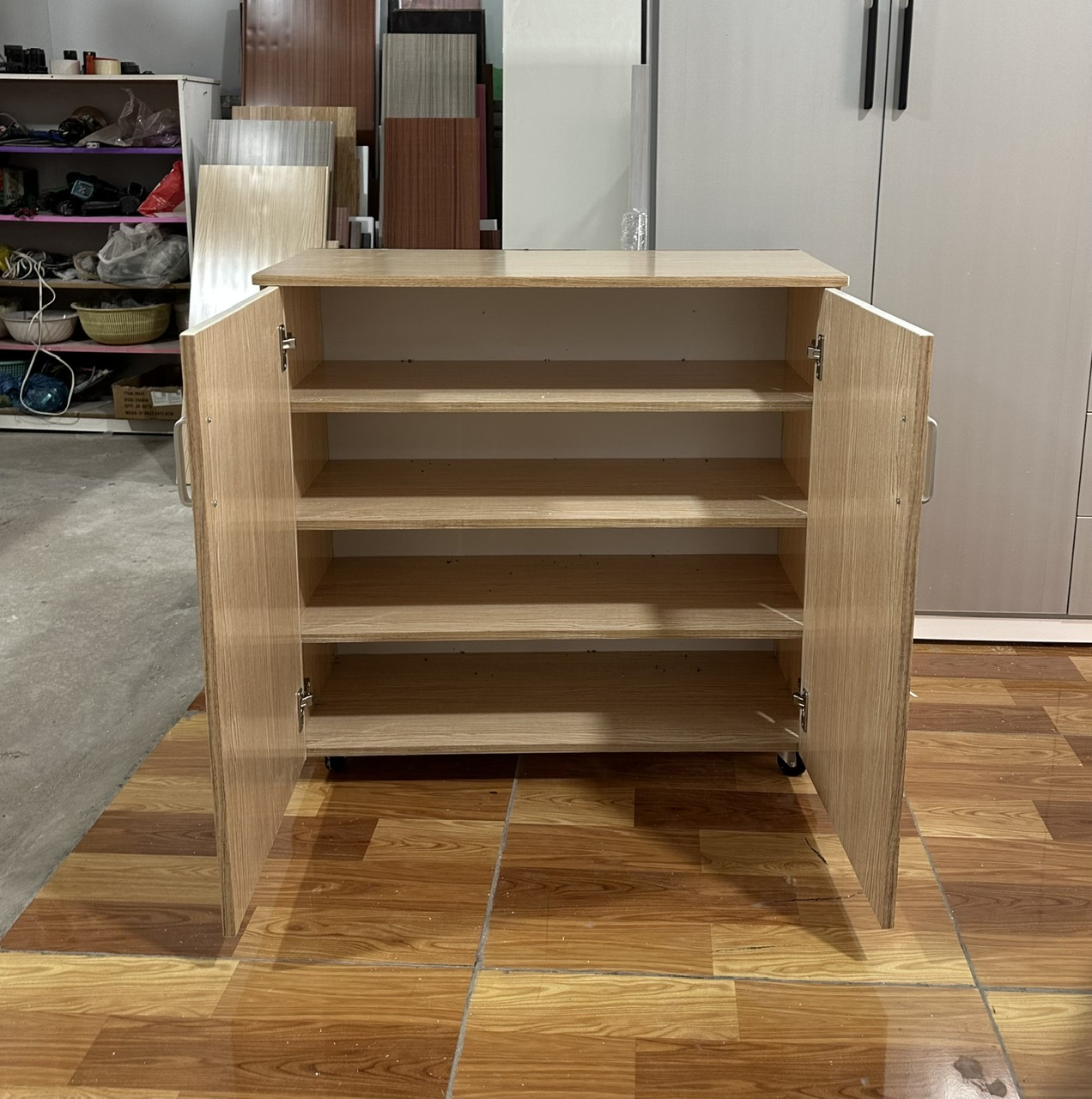 Sản phẩm được làm kỹ càng cẩn thận, có gắn tăng cường vị trí bản lề giúp tăng độ bền cho tủ.