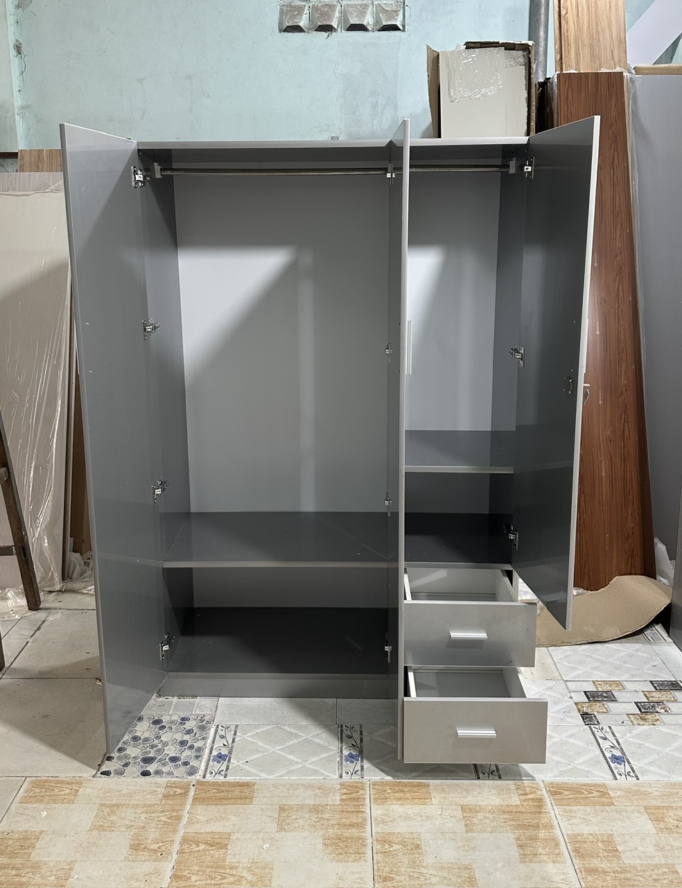 - Kích thước tủ áo : Rộng 121cm * Cao 185cm * Sâu 47cm