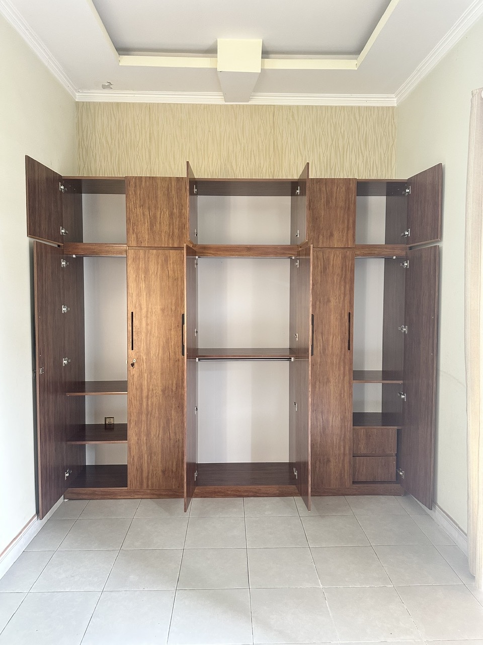 - Bảo Hành kỹ thuật (bản lề, ốc vít, ray ngăn kéo, bung keo) 2 năm, bảo hành khóa 6 tháng.